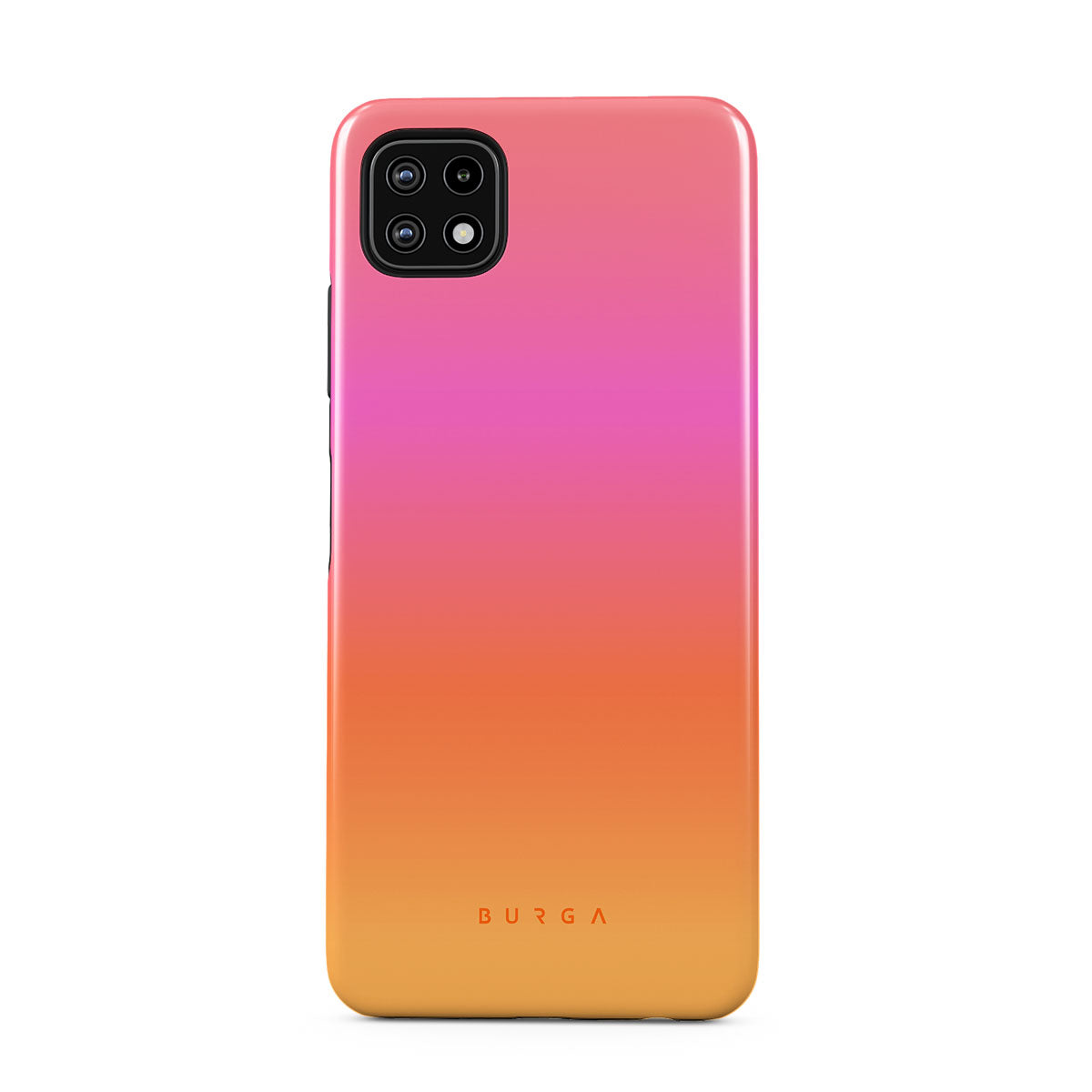 This Sunset Club Samsung Galaxy A22 5G phone case captures the mesmerizing hues of a fading sun, blending fiery oranges and passionate pinks that dance like the horizon at dusk. It's an everyday tribute to the light’s farewell kiss.