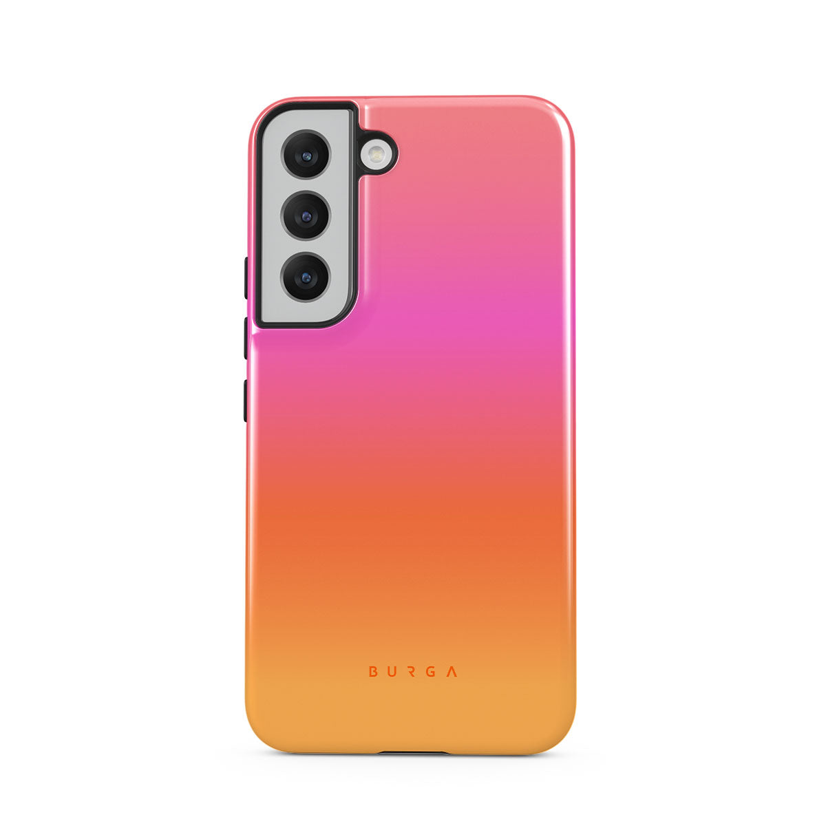 This Sunset Club Samsung Galaxy S22 phone case captures the mesmerizing hues of a fading sun, blending fiery oranges and passionate pinks that dance like the horizon at dusk. It's an everyday tribute to the light’s farewell kiss.
