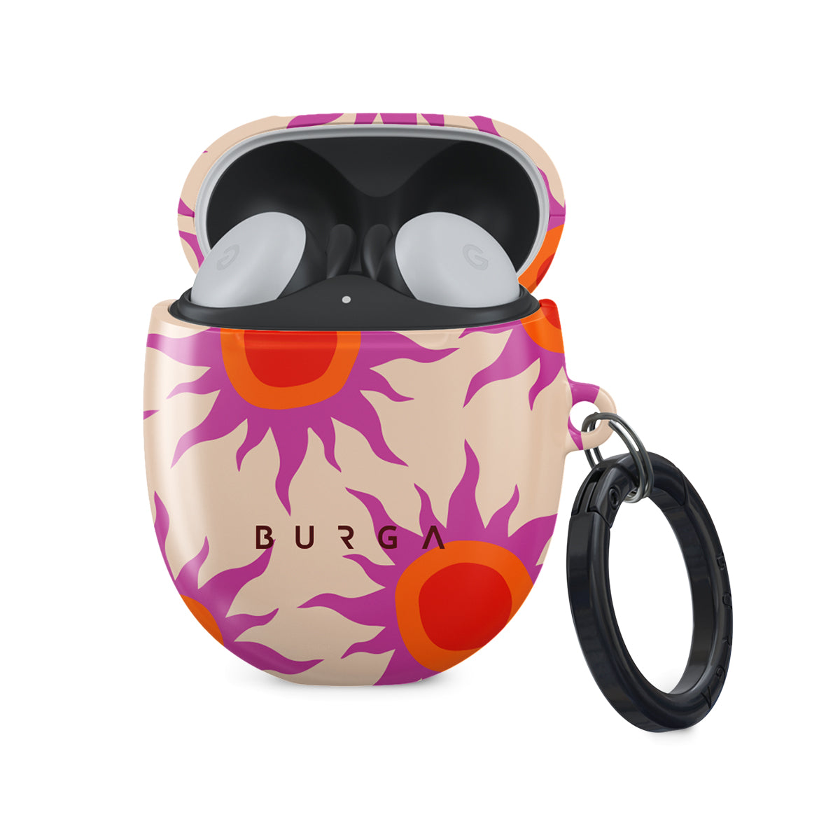 Discover the radiant serenity of the Sunset Glow design, a harmonious blend of soothing pastels and fiery suns. Vivacious viva magenta rays add a playful touch, perfectly balancing tranquility and dynamism. More than just a fashion accessory, this striking Google Pixel Buds 2 case cover mirrors your unique personality and zest for life.