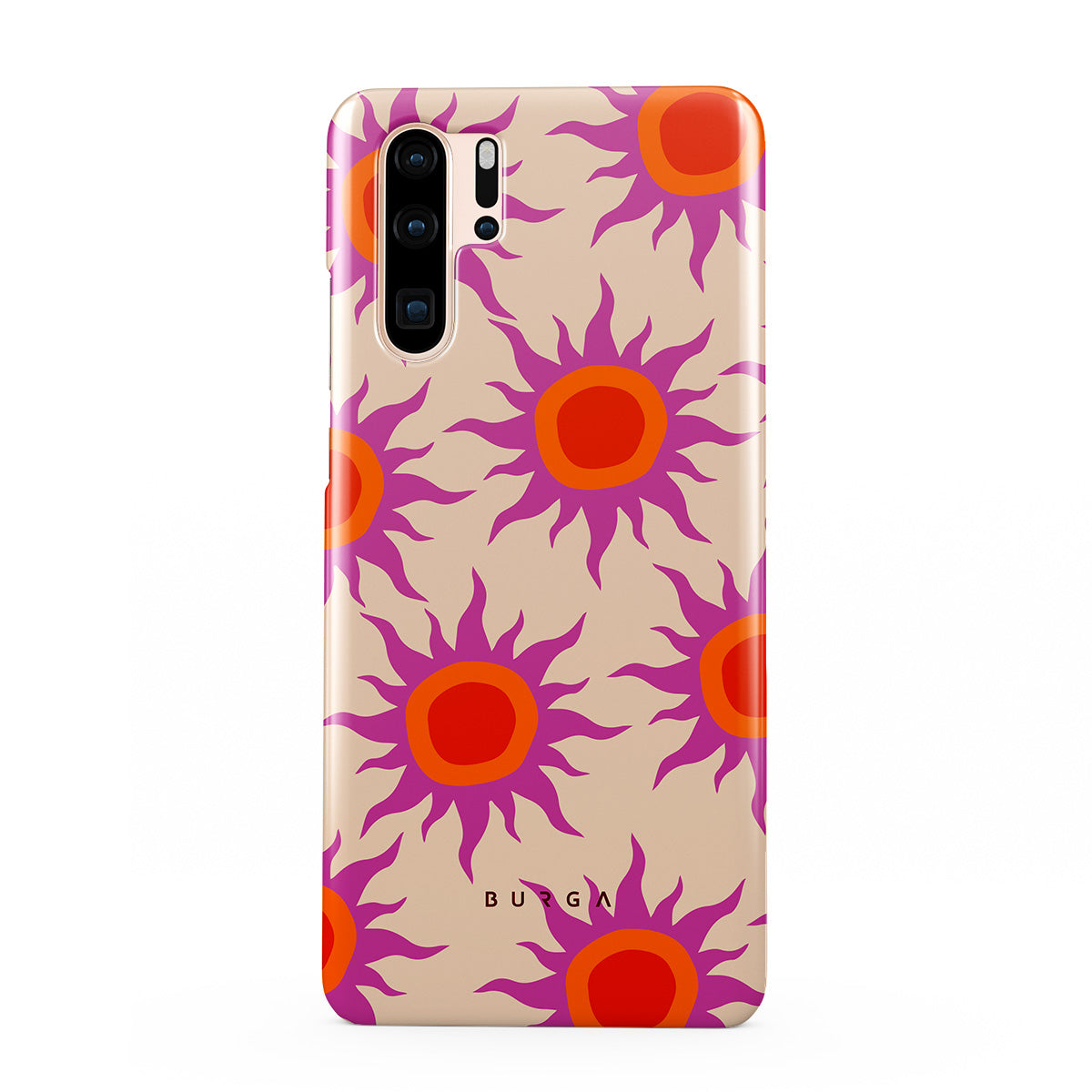 Discover the radiant serenity of the Sunset Glow design, a harmonious blend of soothing pastels and fiery suns. Vivacious viva magenta rays add a playful touch, perfectly balancing tranquility and dynamism. More than just a fashion accessory, this striking Huawei P30 Pro phone case mirrors your unique personality and zest for life.