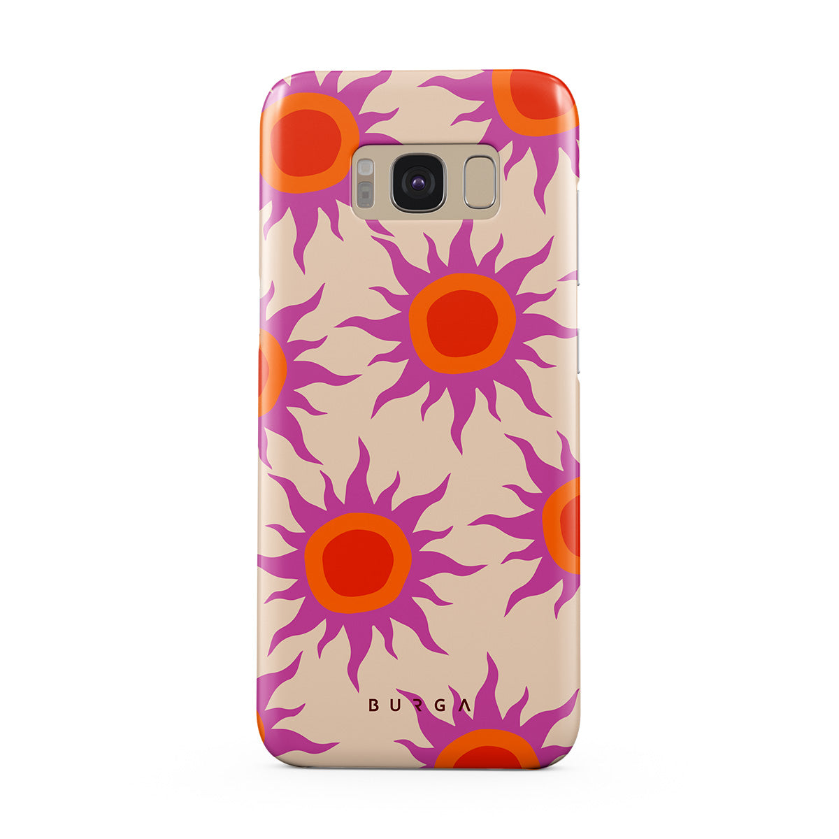 Discover the radiant serenity of the Sunset Glow design, a harmonious blend of soothing pastels and fiery suns. Vivacious viva magenta rays add a playful touch, perfectly balancing tranquility and dynamism. More than just a fashion accessory, this striking Samsung Galaxy S8 phone case mirrors your unique personality and zest for life.
