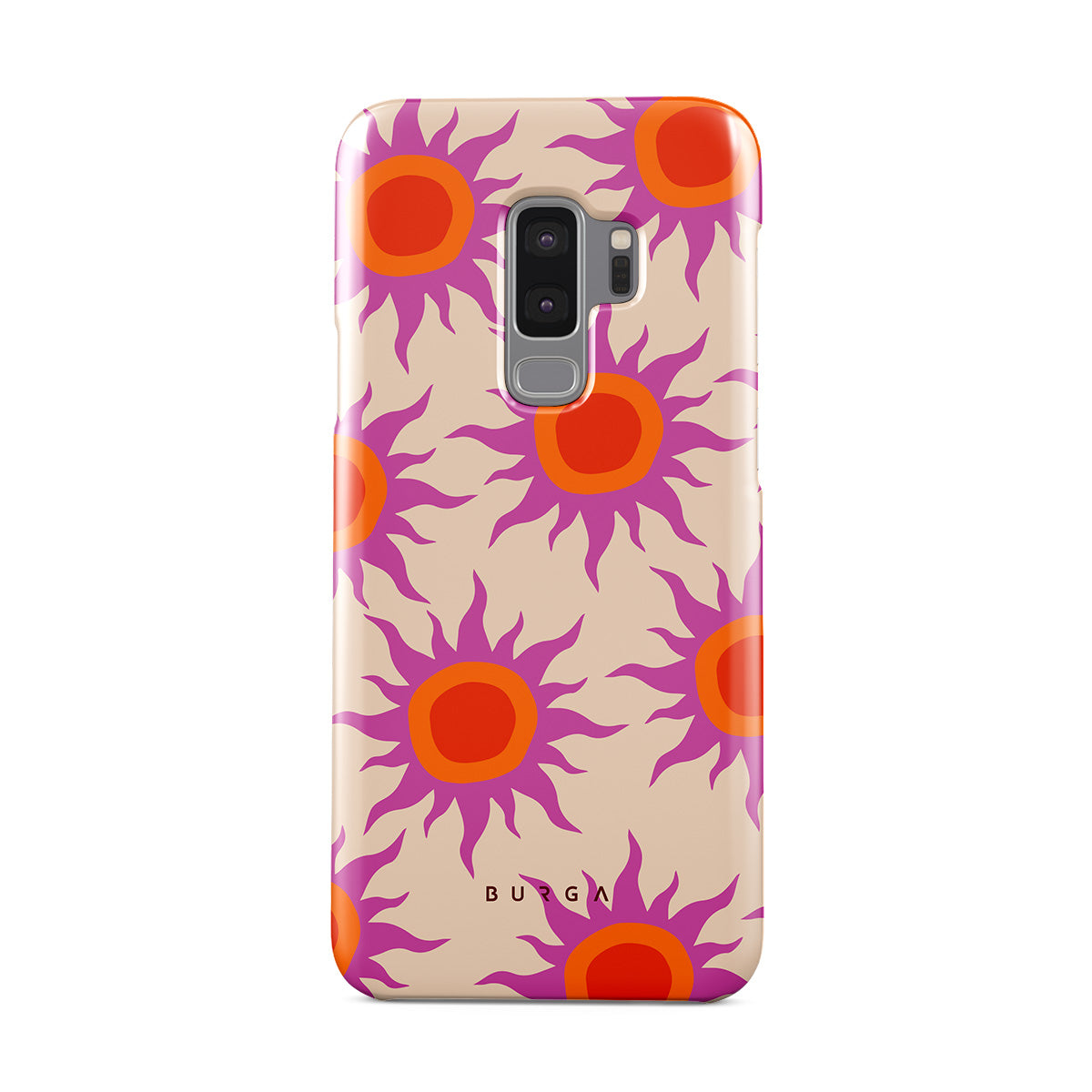 Discover the radiant serenity of the Sunset Glow design, a harmonious blend of soothing pastels and fiery suns. Vivacious viva magenta rays add a playful touch, perfectly balancing tranquility and dynamism. More than just a fashion accessory, this striking Samsung Galaxy S9 Plus phone case mirrors your unique personality and zest for life.