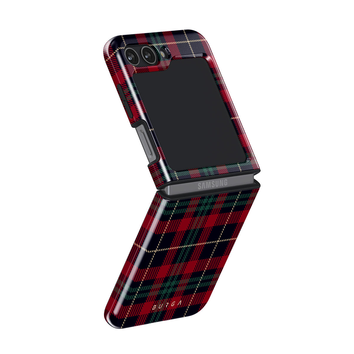 Our Sweater Weather design blends the classic appeal of plaid with the cozy comfort of a holiday sweater, featuring deep reds, navy, and greens. This timeless pattern keeps your Samsung Galaxy Z Flip 5 Case phone case snug and stylish, echoing enduring elegance that lasts all year round.