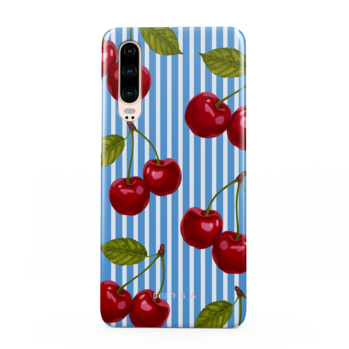 Cherries dangle like earrings from blue skies, a fun reminder of that first bite of summer, juicy and bursting with laughter. Meet our Sweet Moment Huawei P30 phone case design.