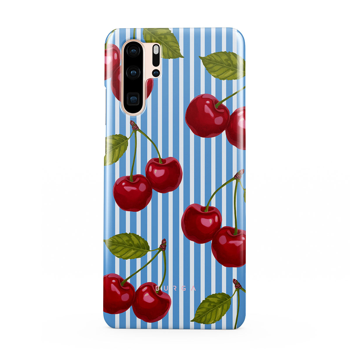 Cherries dangle like earrings from blue skies, a fun reminder of that first bite of summer, juicy and bursting with laughter. Meet our Sweet Moment Huawei P30 Pro phone case design.