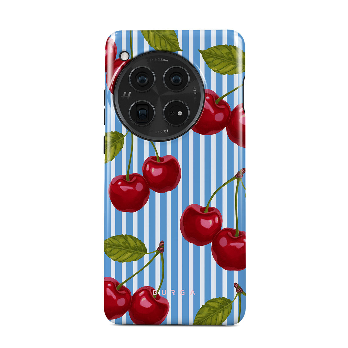 Cherries dangle like earrings from blue skies, a fun reminder of that first bite of summer, juicy and bursting with laughter. Meet our Sweet Moment OnePlus 12 phone case design.