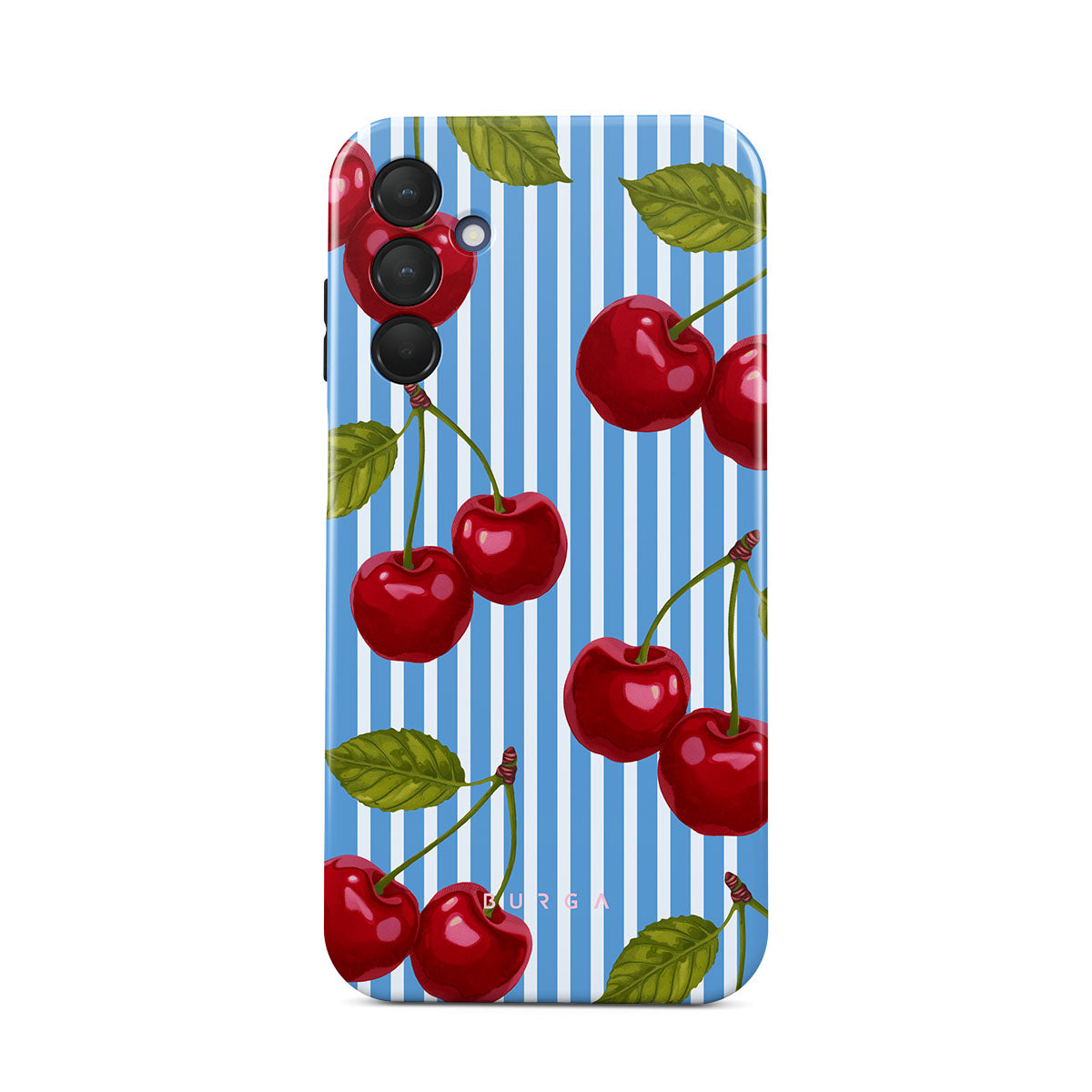 Cherries dangle like earrings from blue skies, a fun reminder of that first bite of summer, juicy and bursting with laughter. Meet our Sweet Moment Samsung Galaxy A15 4G / 5G phone case design.