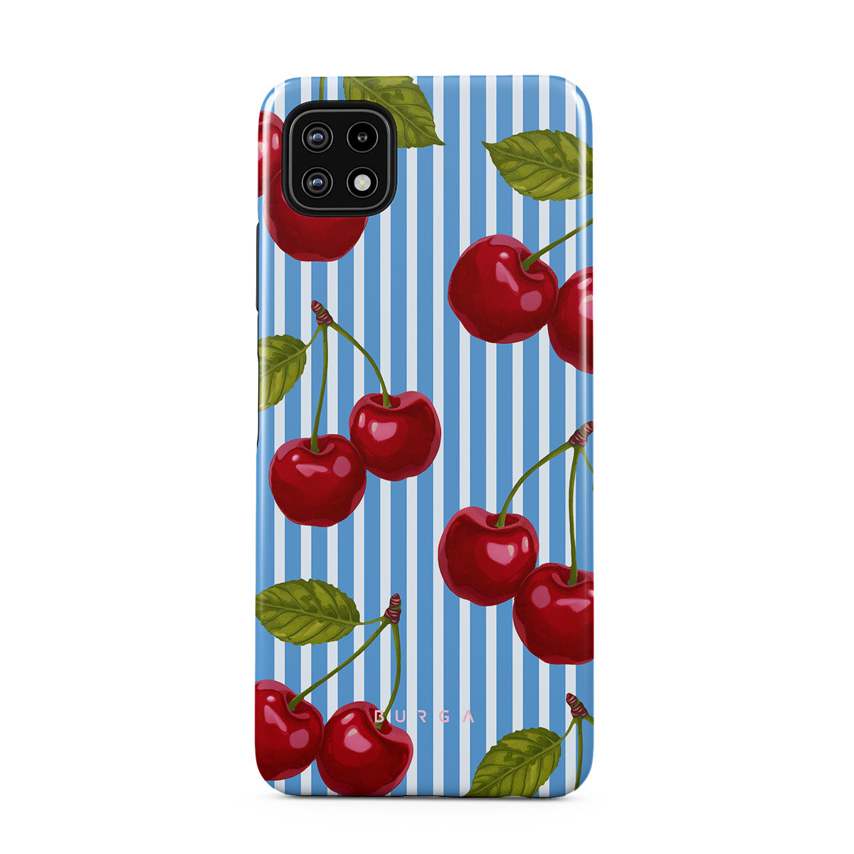 Cherries dangle like earrings from blue skies, a fun reminder of that first bite of summer, juicy and bursting with laughter. Meet our Sweet Moment Samsung Galaxy A22 5G phone case design.