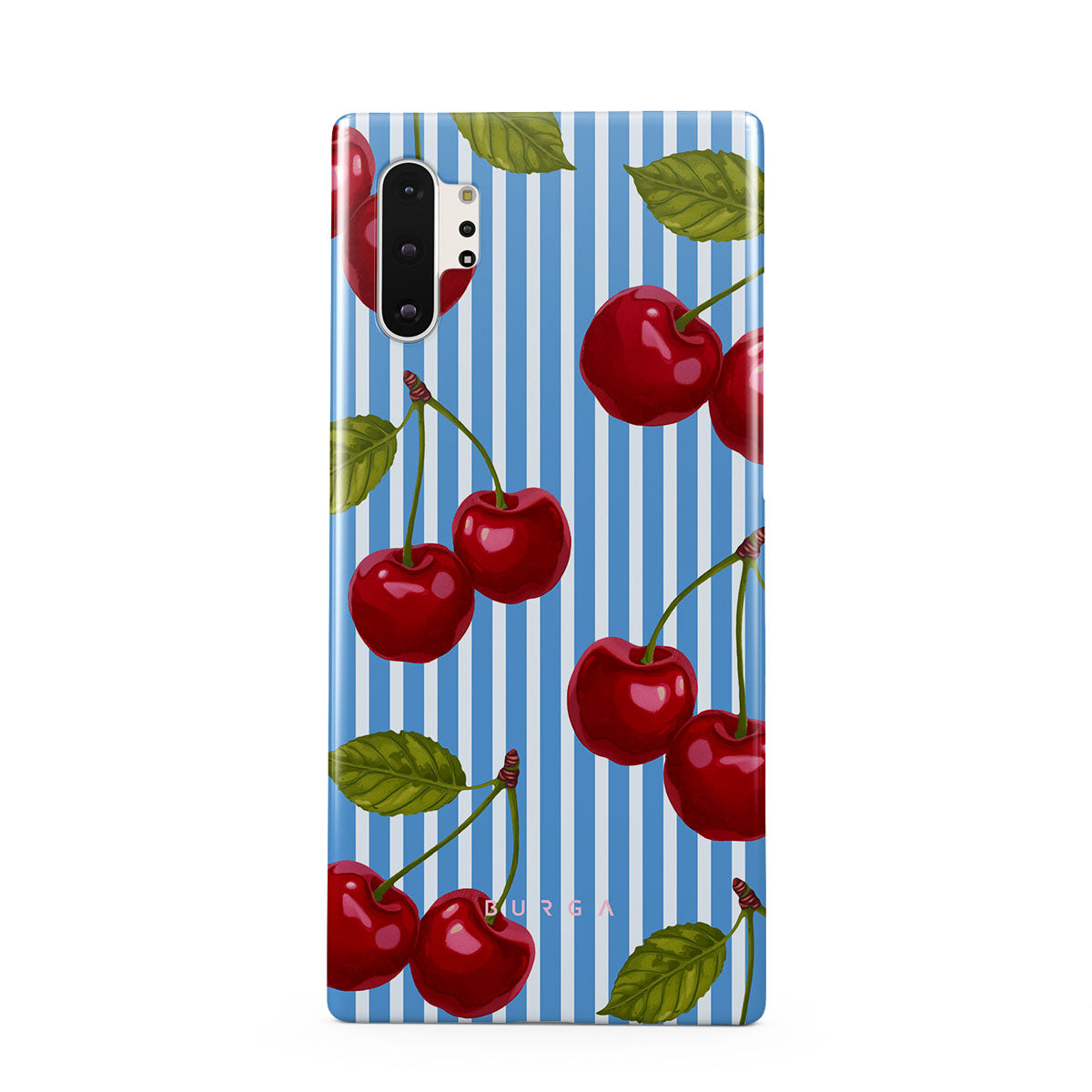 Cherries dangle like earrings from blue skies, a fun reminder of that first bite of summer, juicy and bursting with laughter. Meet our Sweet Moment Samsung Galaxy Note 10 Plus phone case design.