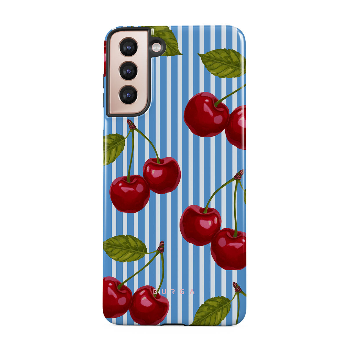 Cherries dangle like earrings from blue skies, a fun reminder of that first bite of summer, juicy and bursting with laughter. Meet our Sweet Moment Samsung Galaxy S21 Plus phone case design.