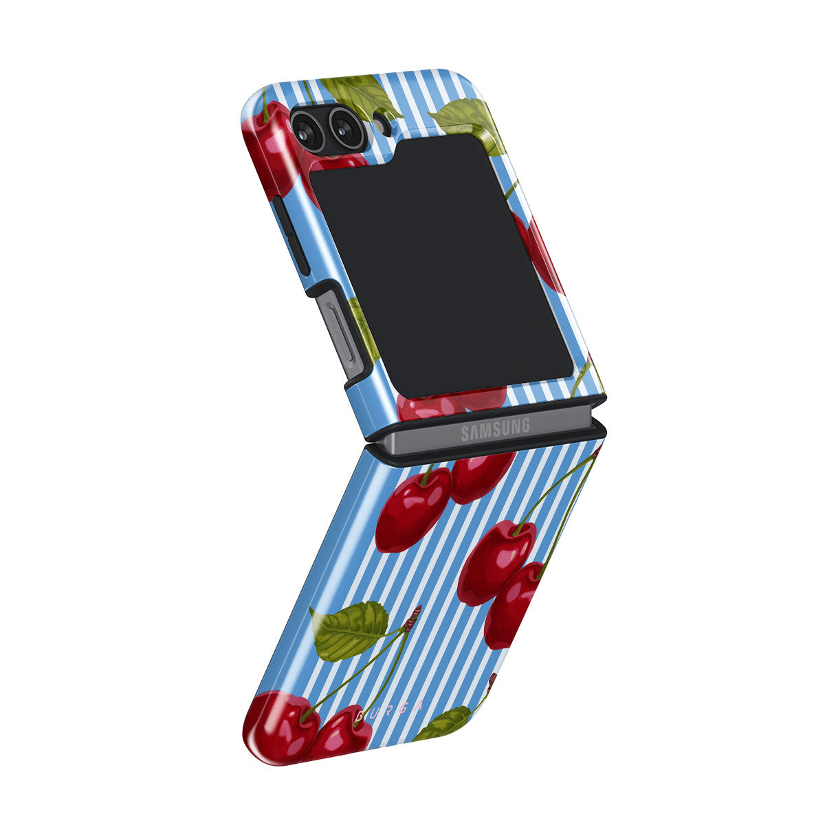 Cherries dangle like earrings from blue skies, a fun reminder of that first bite of summer, juicy and bursting with laughter. Meet our Sweet Moment Samsung Galaxy Z Flip 5 phone case design.