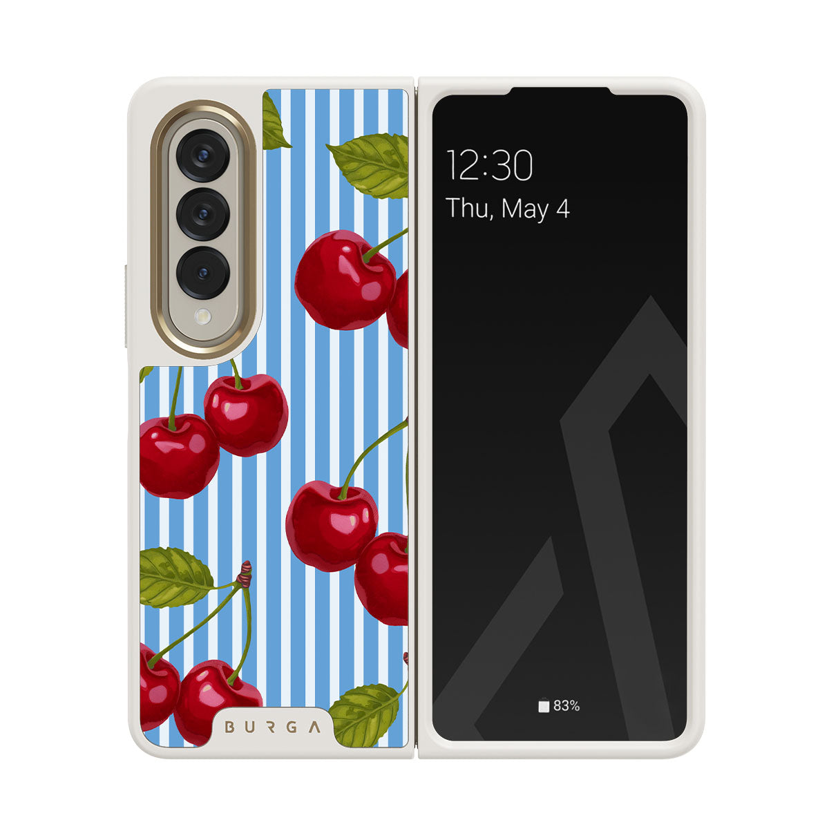 Cherries dangle like earrings from blue skies, a fun reminder of that first bite of summer, juicy and bursting with laughter. Meet our Sweet Moment Samsung Galaxy Z Fold 4 phone case design.