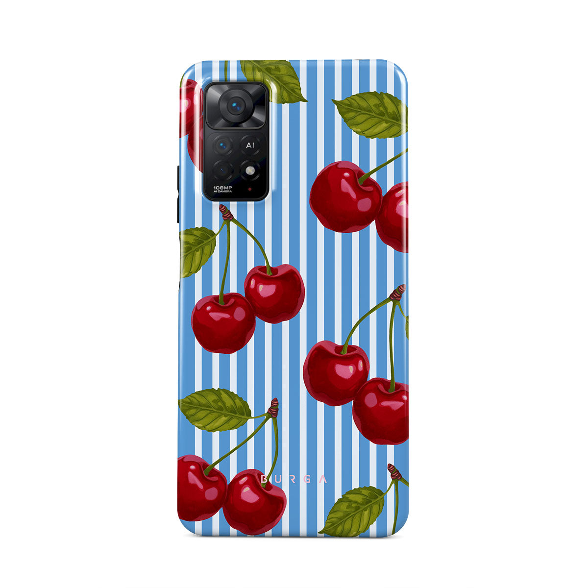 Cherries dangle like earrings from blue skies, a fun reminder of that first bite of summer, juicy and bursting with laughter. Meet our Sweet Moment Xiaomi Redmi Note 11 Pro phone case design.