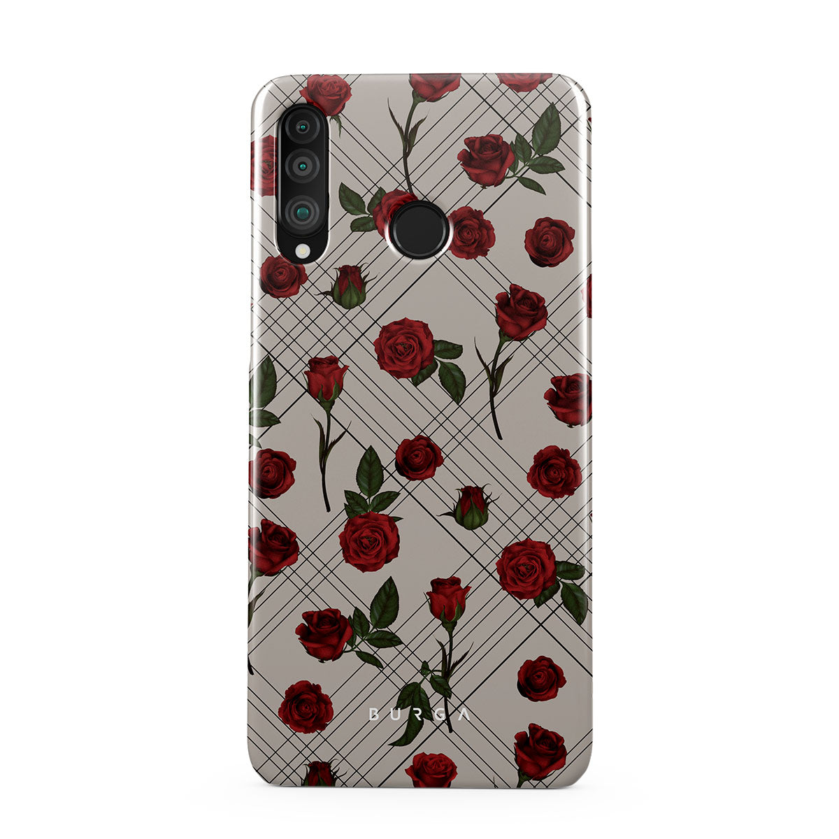 Embrace the subtle rebellion of our Sweet Sin Huawei P30 Lite phone case design. On a muted nude-gray canvas, scattered small red roses hint at passions hidden beneath the surface. A design that balances the delicate with the daring. Crafted for those who find beauty in the unexpected and wear their edge with elegance.