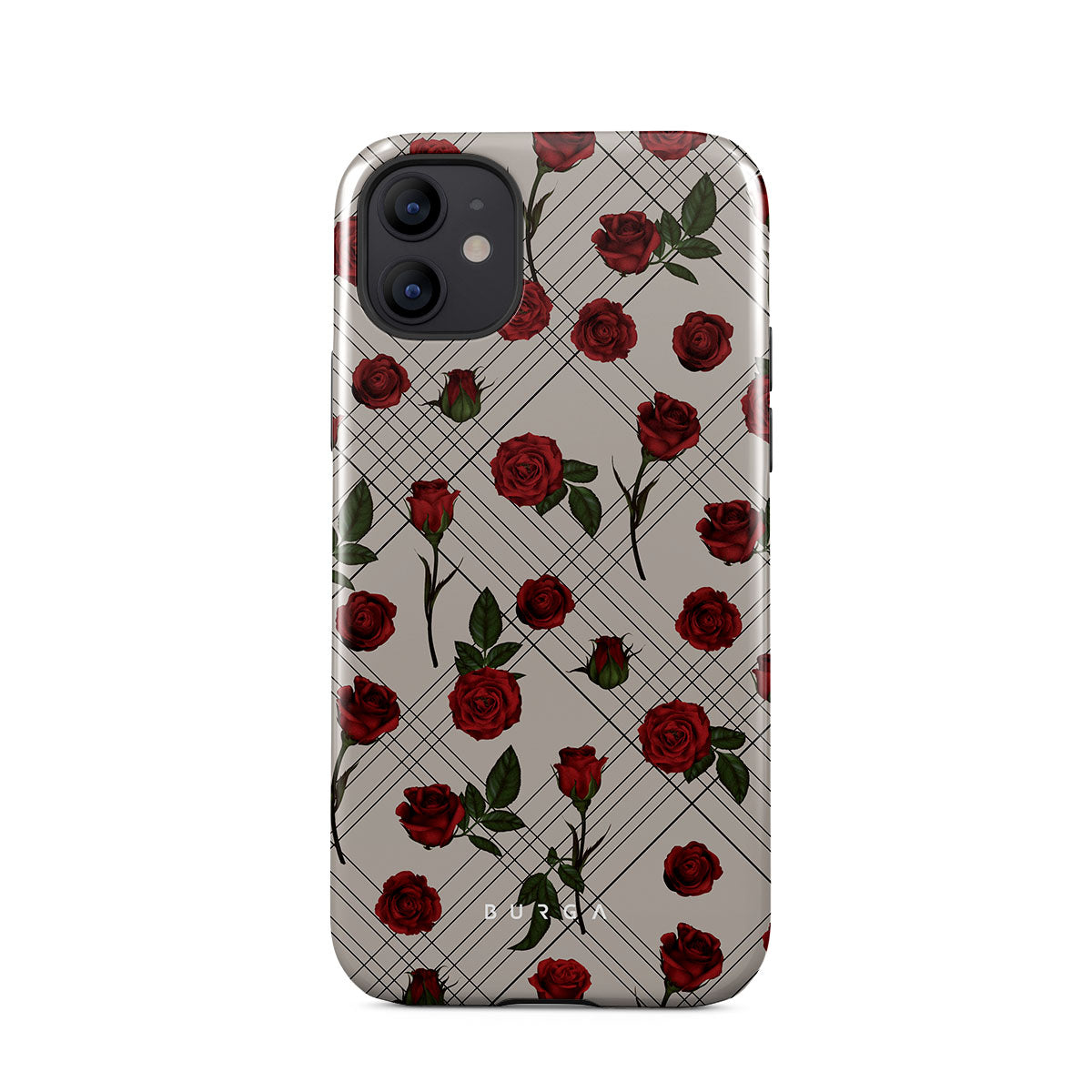 Embrace the subtle rebellion of our Sweet Sin iPhone 12 phone case design. On a muted nude-gray canvas, scattered small red roses hint at passions hidden beneath the surface. A design that balances the delicate with the daring. Crafted for those who find beauty in the unexpected and wear their edge with elegance.