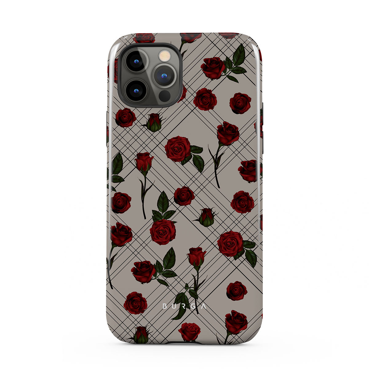 Embrace the subtle rebellion of our Sweet Sin iPhone 12 Pro phone case design. On a muted nude-gray canvas, scattered small red roses hint at passions hidden beneath the surface. A design that balances the delicate with the daring. Crafted for those who find beauty in the unexpected and wear their edge with elegance.
