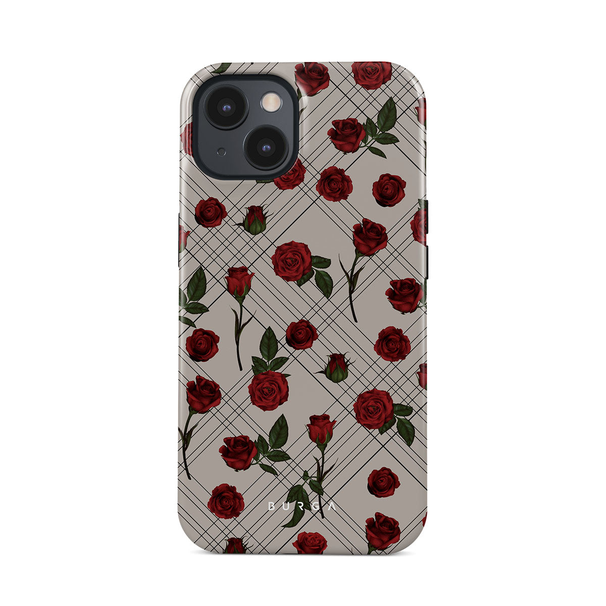 Embrace the subtle rebellion of our Sweet Sin iPhone 13 Mini phone case design. On a muted nude-gray canvas, scattered small red roses hint at passions hidden beneath the surface. A design that balances the delicate with the daring. Crafted for those who find beauty in the unexpected and wear their edge with elegance.