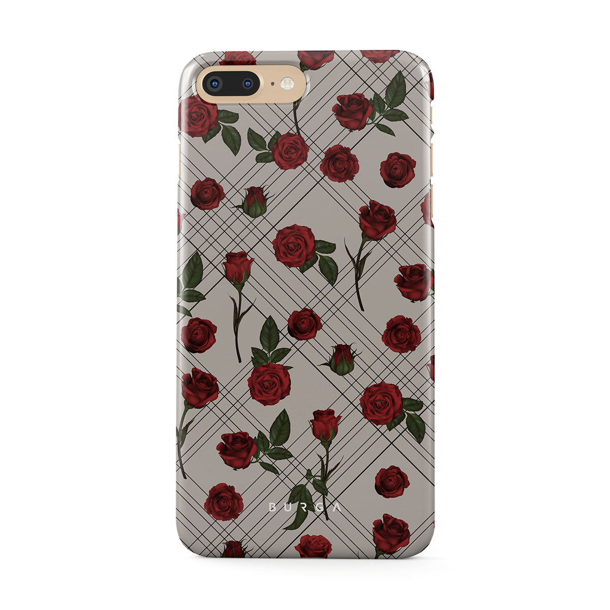 Embrace the subtle rebellion of our Sweet Sin iPhone 7 Plus / 8 Plus phone case design. On a muted nude-gray canvas, scattered small red roses hint at passions hidden beneath the surface. A design that balances the delicate with the daring. Crafted for those who find beauty in the unexpected and wear their edge with elegance.