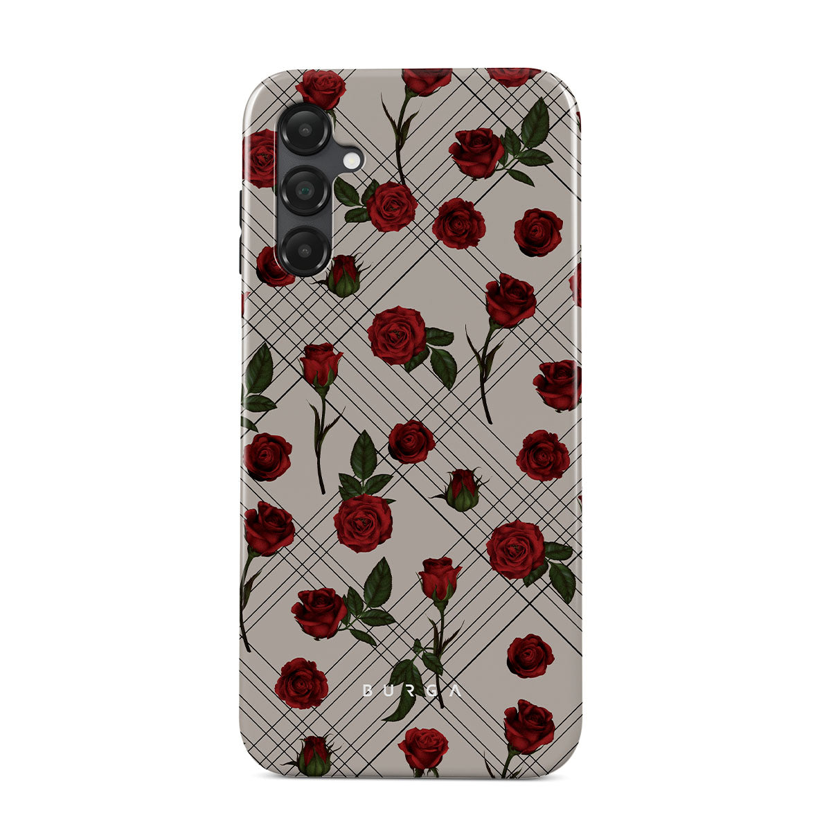 Embrace the subtle rebellion of our Sweet Sin Samsung Galaxy A14 5G phone case design. On a muted nude-gray canvas, scattered small red roses hint at passions hidden beneath the surface. A design that balances the delicate with the daring. Crafted for those who find beauty in the unexpected and wear their edge with elegance.