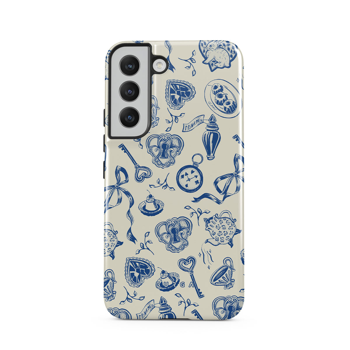 The Tea Party Samsung Galaxy S22 phone case design is a porcelain puzzle—ribbons tangled, time warped, rules rewritten. Sit down, pour a cup, but don’t expect things to make sense. They never do.