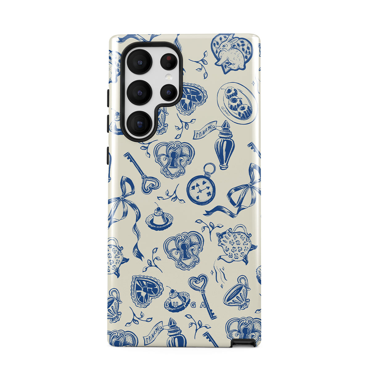 The Tea Party Samsung Galaxy S22 Ultra phone case design is a porcelain puzzle—ribbons tangled, time warped, rules rewritten. Sit down, pour a cup, but don’t expect things to make sense. They never do.