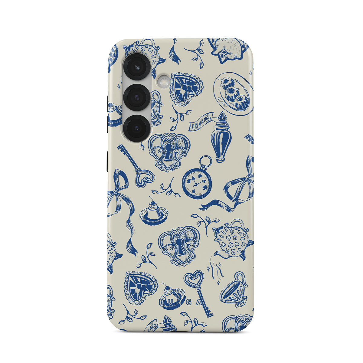 The Tea Party Samsung Galaxy S25 phone case design is a porcelain puzzle—ribbons tangled, time warped, rules rewritten. Sit down, pour a cup, but don’t expect things to make sense. They never do.