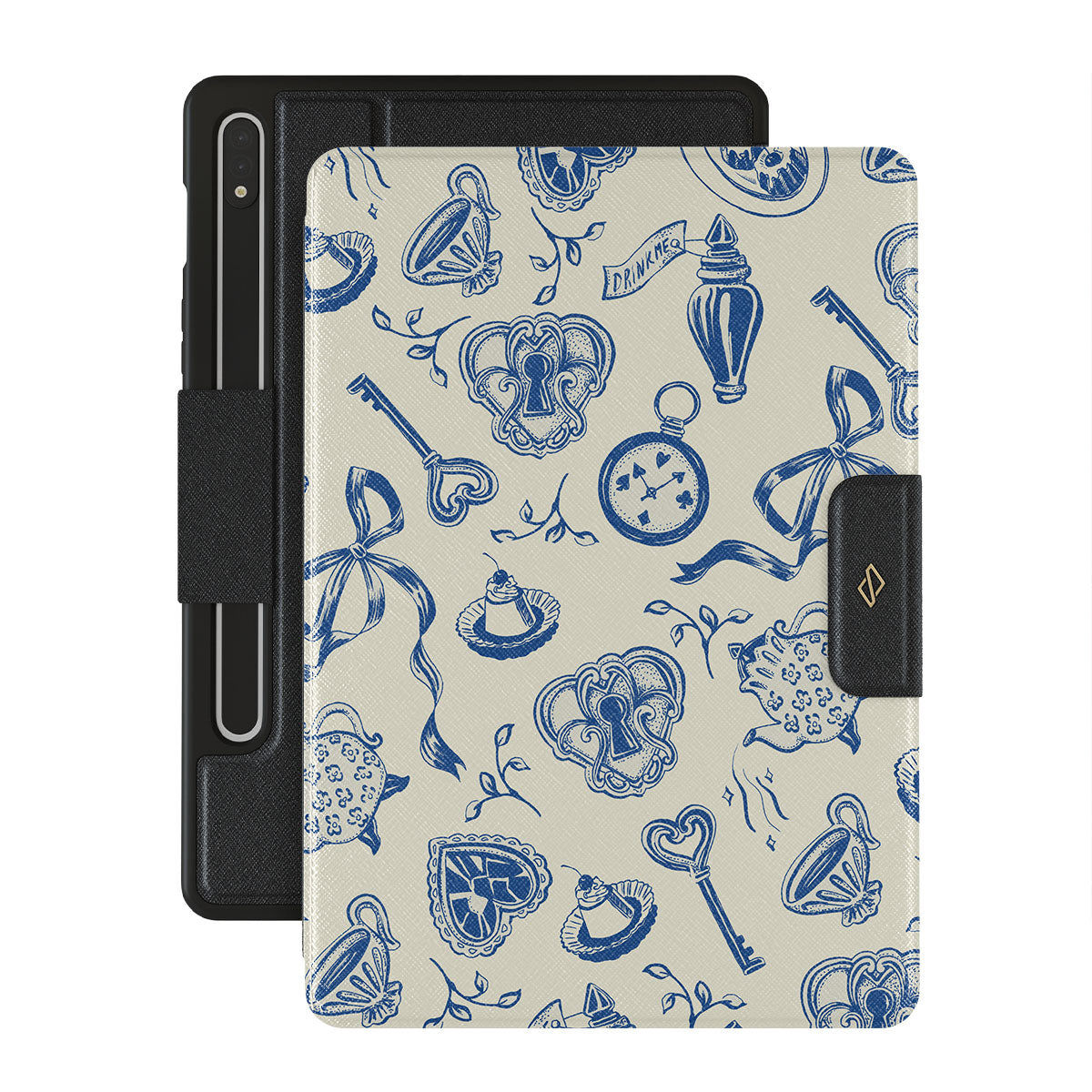 The Tea Party Samsung Galaxy Tab S9 FE folio case design is a porcelain puzzle—ribbons tangled, time warped, rules rewritten. Sit down, pour a cup, but don’t expect things to make sense. They never do.