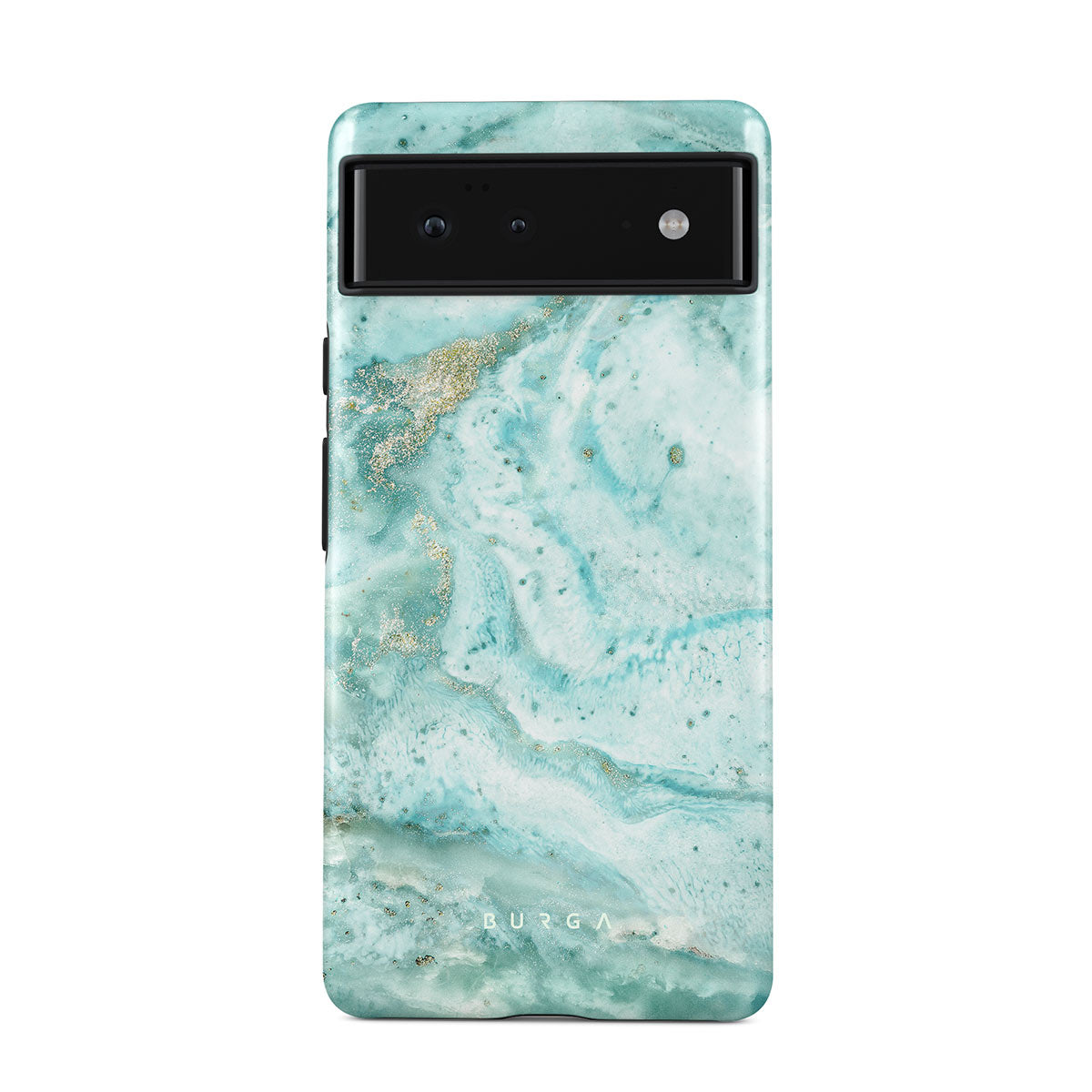Our Uluwatu Waves Google Pixel 6 phone case is an absolute teal dream. This phone cover features timeless and soft blue marble pattern enriched with golden color specks will surely remind you of a tropical beach teal waters while becoming a protective best friend for your cell phone.