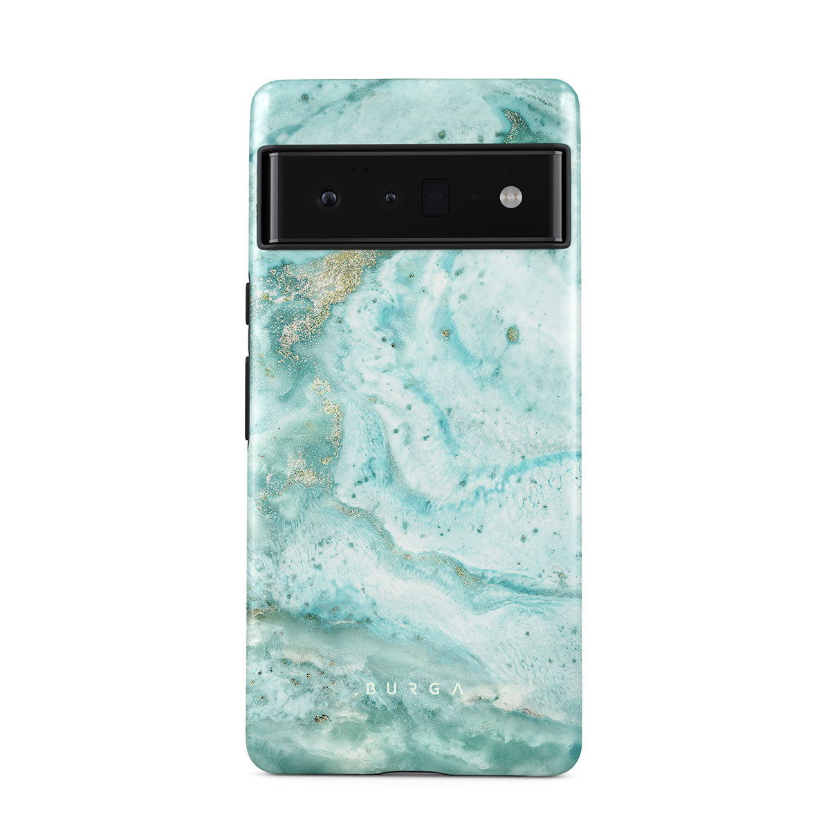 Our Uluwatu Waves Google Pixel 6 Pro phone case is an absolute teal dream. This phone cover features timeless and soft blue marble pattern enriched with golden color specks will surely remind you of a tropical beach teal waters while becoming a protective best friend for your cell phone.