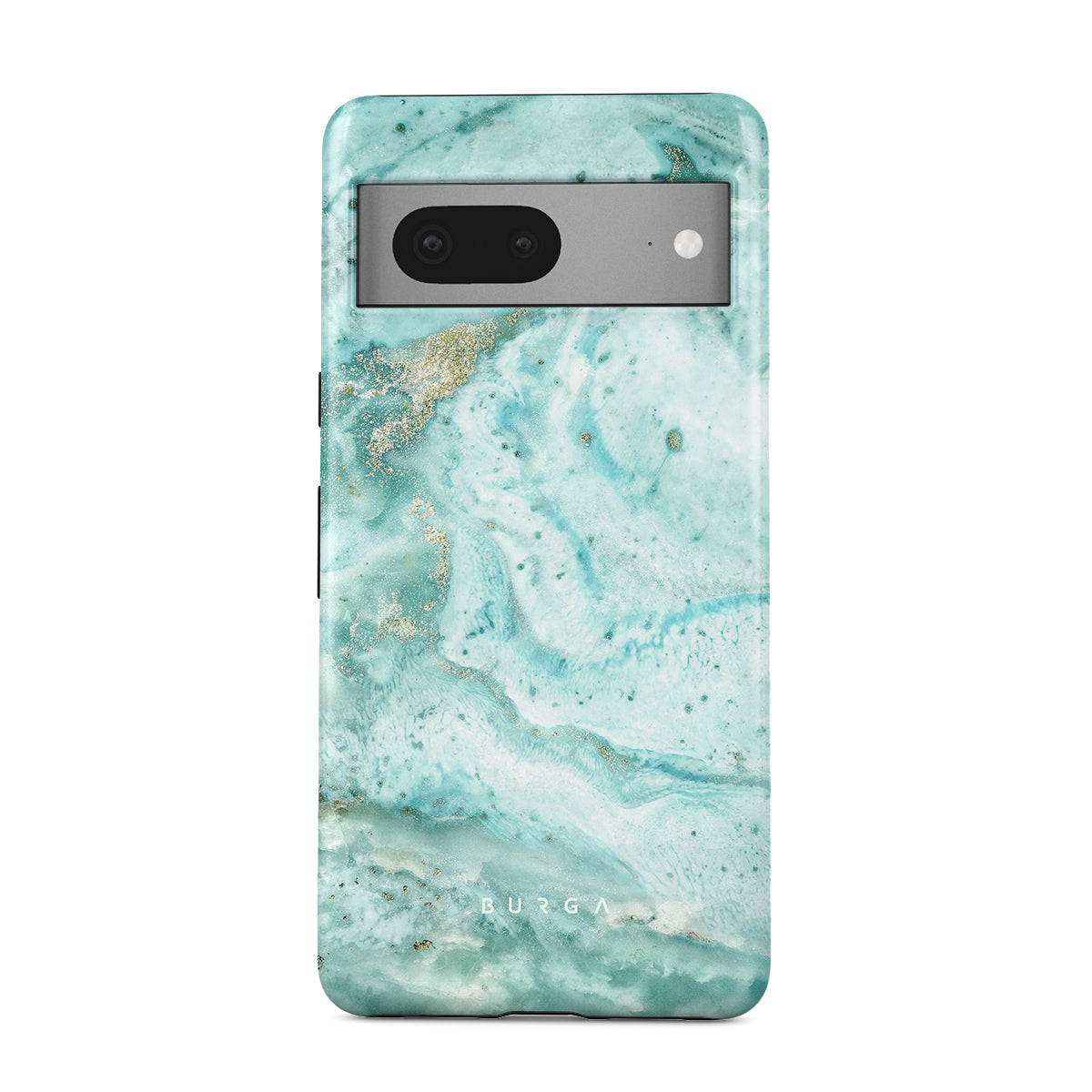 Our Uluwatu Waves Google Pixel 7a phone case is an absolute teal dream. This phone cover features timeless and soft blue marble pattern enriched with golden color specks will surely remind you of a tropical beach teal waters while becoming a protective best friend for your cell phone.