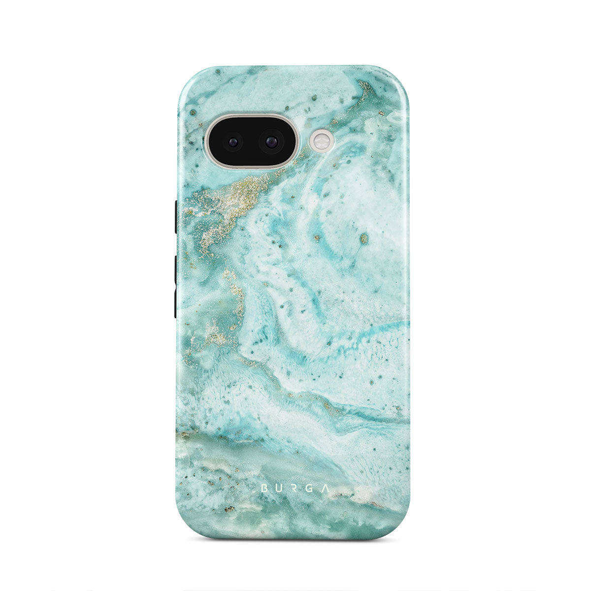 Our Uluwatu Waves Google Pixel 9a phone case is an absolute teal dream. This phone cover features timeless and soft blue marble pattern enriched with golden color specks will surely remind you of a tropical beach teal waters while becoming a protective best friend for your cell phone.
