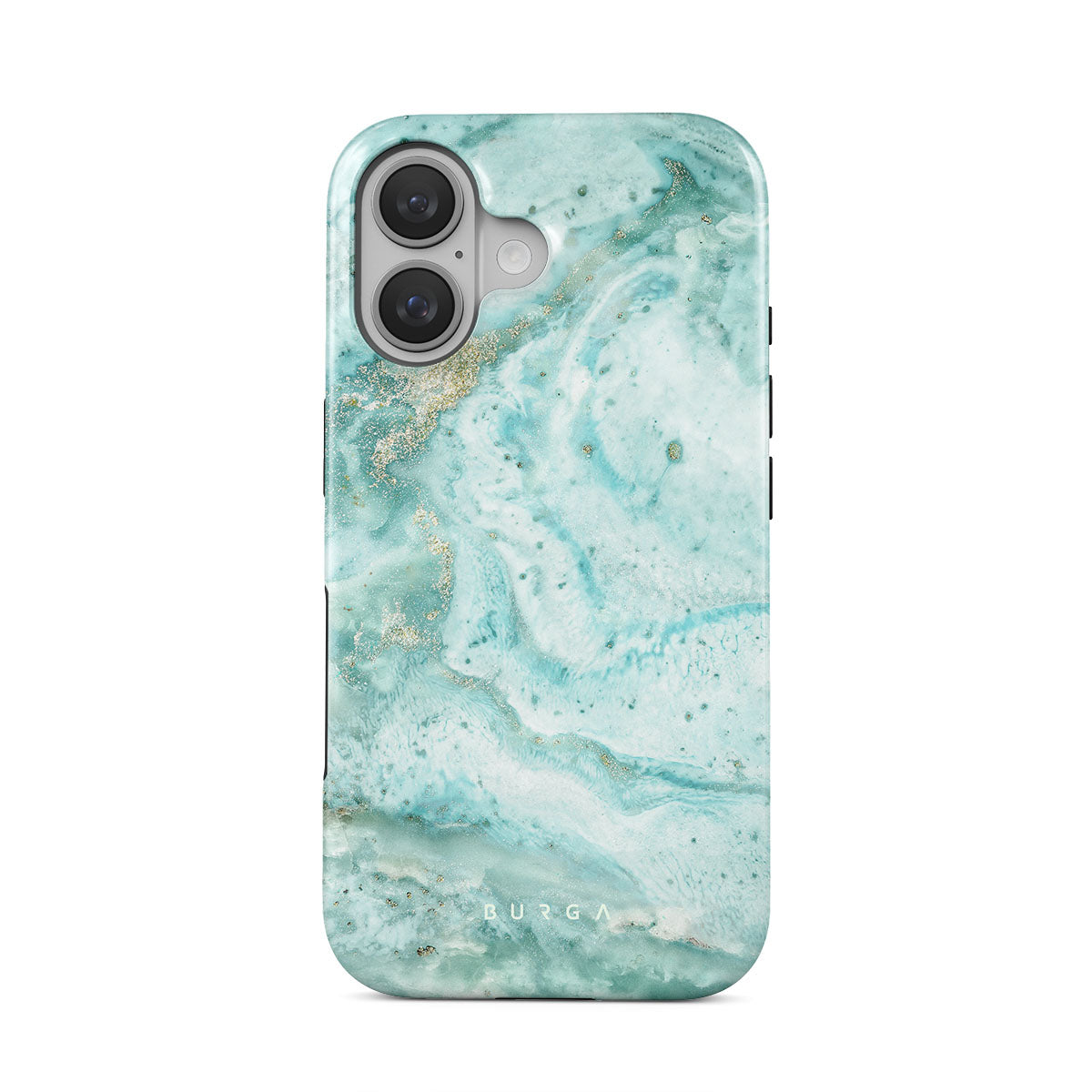 Our Uluwatu Waves iPhone 16 Plus phone case is an absolute teal dream. This phone cover features timeless and soft blue marble pattern enriched with golden color specks will surely remind you of a tropical beach teal waters while becoming a protective best friend for your cell phone.