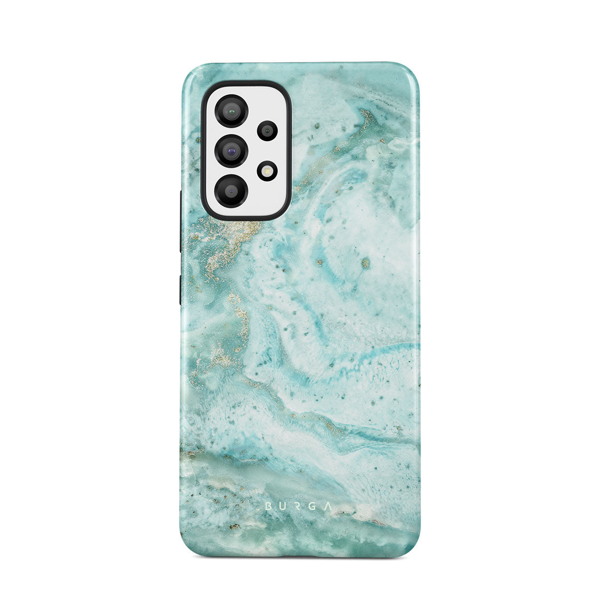 Our Uluwatu Waves Samsung Galaxy A33 phone case is an absolute teal dream. This phone cover features timeless and soft blue marble pattern enriched with golden color specks will surely remind you of a tropical beach teal waters while becoming a protective best friend for your cell phone.