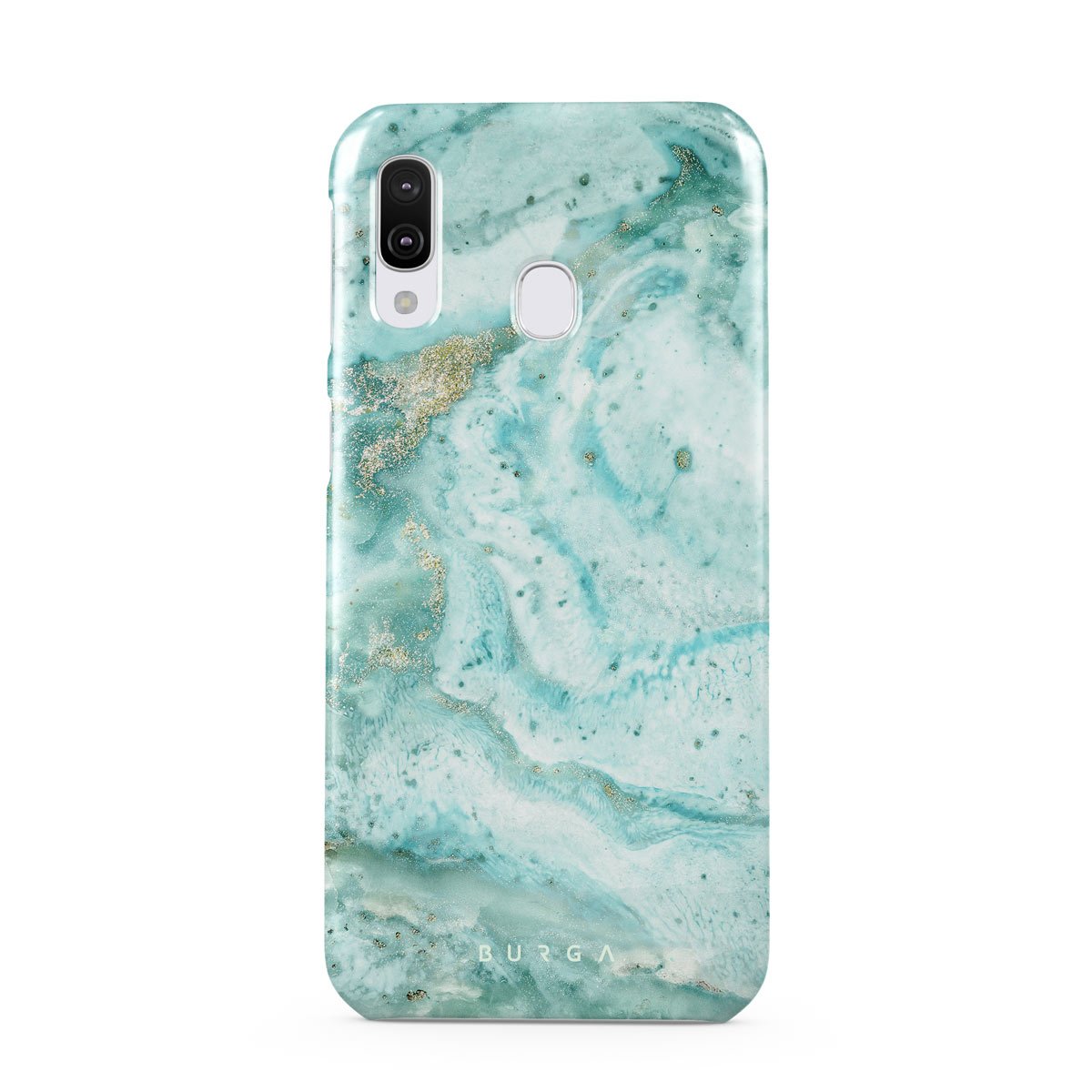 Our Uluwatu Waves Samsung Galaxy A40 phone case is an absolute teal dream. This phone cover features timeless and soft blue marble pattern enriched with golden color specks will surely remind you of a tropical beach teal waters while becoming a protective best friend for your cell phone.