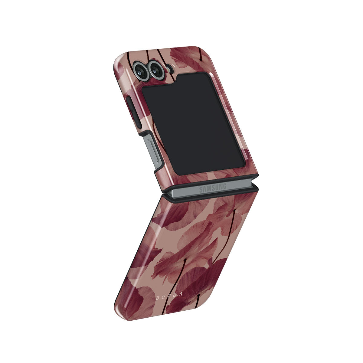 Capture the sweetness of a first love with Tender Kiss — a design that combines the delicate touch of petals on a soft pink background. This Samsung Galaxy Z Flip 6 phone case design is crafted for those who cherish the tender moments and the dreamy whispers of a romantic past.