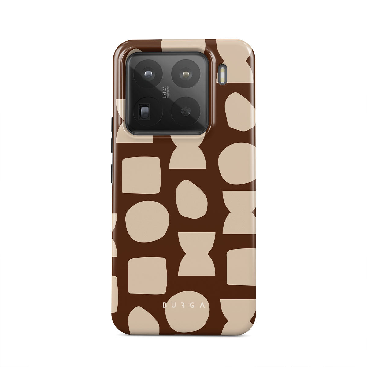 Our Terracotta Xiaomi 15 Pro phone case design whispers warmth and grounded energy. Against a rich brown background, an interplay of light shapes unfolds, captivating the eye with an array of circles, squares, and hourglasses. Each shape is a testament to the beauty found in simplicity.