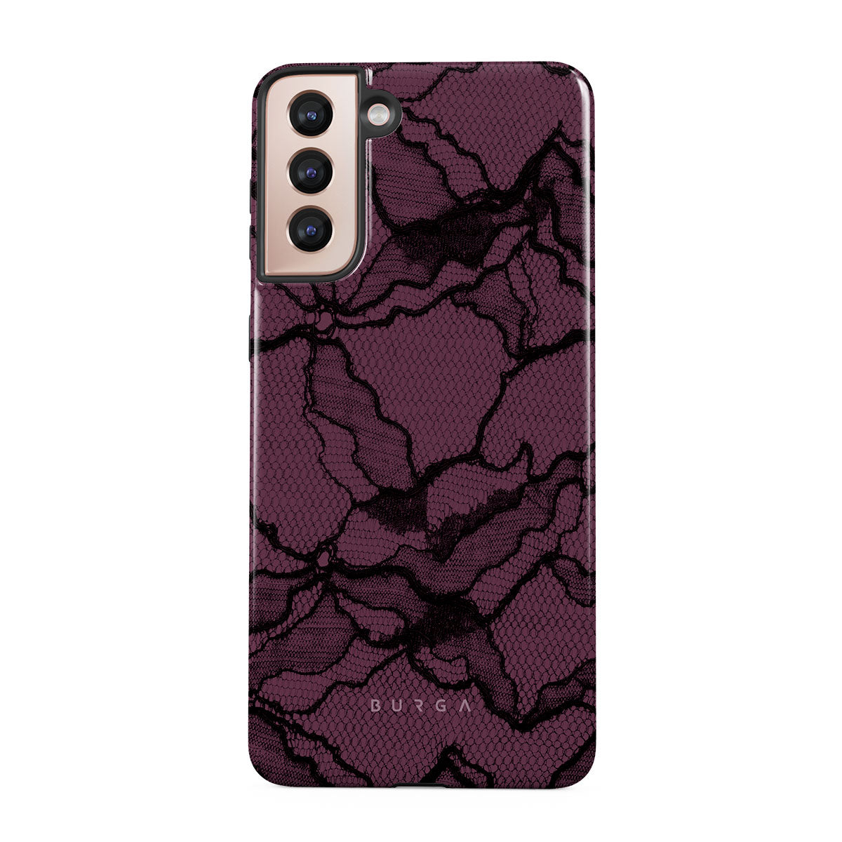 This design, reminiscent of a fragment of a vintage lace dress, captivates and invites touch. It’s perfect for the woman who commands attention with just a glance. With this Samsung Galaxy S21 Plus phone case design, every day is your stage, making you That Girl – the one who effortlessly blends mystery, boldness, and a flair of old-world charm into today's trends.
