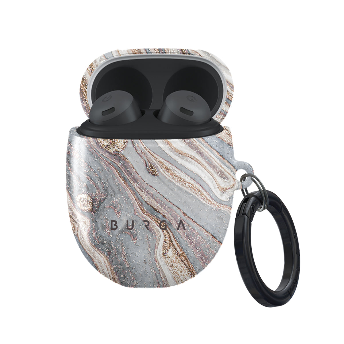 Google Pixel Buds Pro case cover, match the protective qualities of the with an always trending marble pattern to create the best addition to your style. Our case fits perfectly snug around Google Pixel Buds Pro . “Like a glove!” one might say. And it won’t disrupt the wireless charging capabilities of the newer model. There’s even an LED light indicator to prove it (don’t worry, wired charging still works, too). When fitted, the BURGA case will protect the delicate Google Pixel Buds Pro case beneath it from scratches, bumps, and drops while remaining scratch-free itself. Our signature design pattern prints are High Quality, and will never peel or fade away- thanks to our unique printing technology. And finally, a handy carabiner is there to make your life easier and more convenient: just snap it around your keys or belt loop and tackle the day head-on. Your music is right there by your side when you need it.