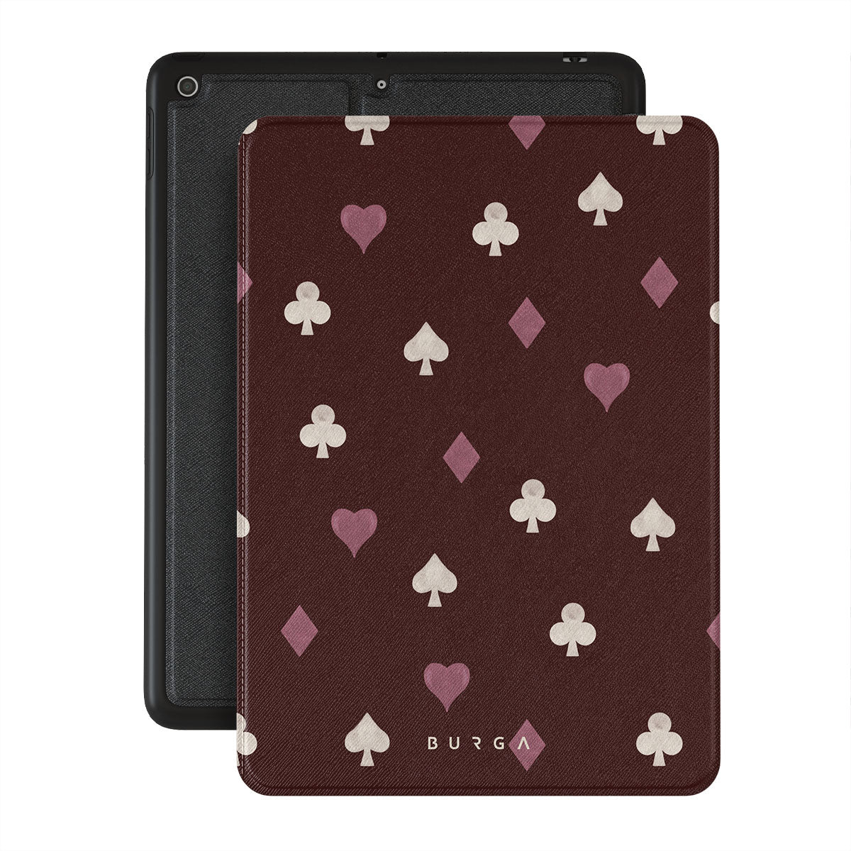 Nothing is as it appears. Hearts, clubs, diamonds, and spades—stacked in your favor or playing against you? This iPad 10.2 (9th/8th/7th Gen) folio case design features a rich burgundy background and minimalist suits that make for a game where the rules are constantly shifting.