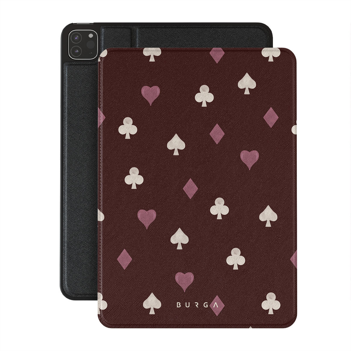Nothing is as it appears. Hearts, clubs, diamonds, and spades—stacked in your favor or playing against you? This iPad Pro 11 (2nd/1st Gen) folio case design features a rich burgundy background and minimalist suits that make for a game where the rules are constantly shifting.