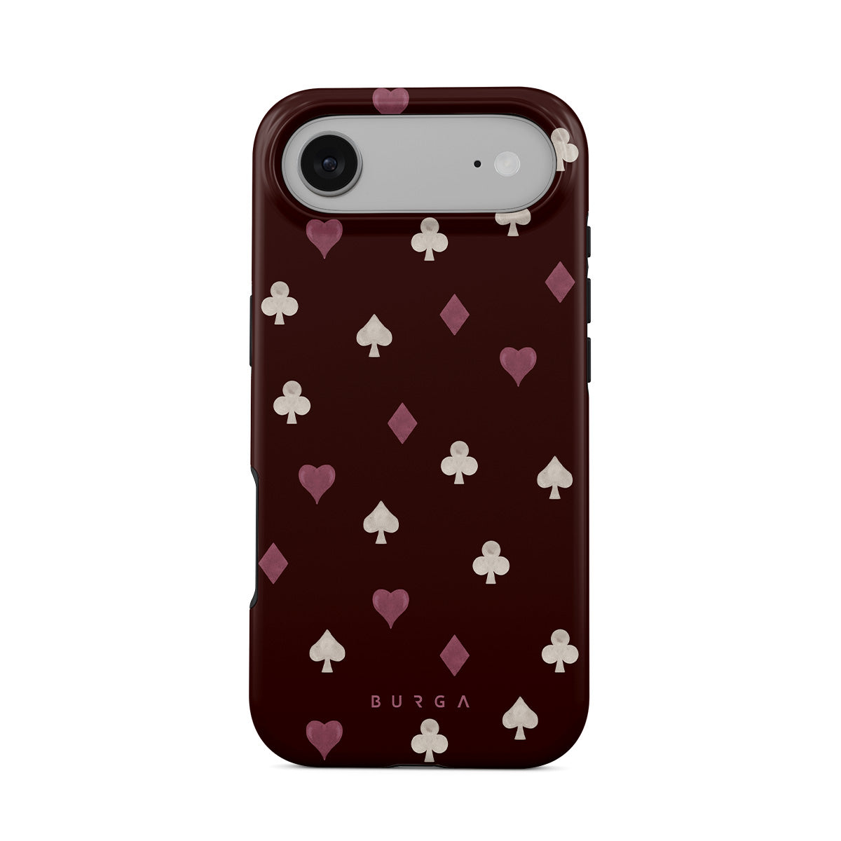 Nothing is as it appears. Hearts, clubs, diamonds, and spades—stacked in your favor or playing against you? This iPhone Air phone case design features a rich burgundy background and minimalist suits that make for a game where the rules are constantly shifting.