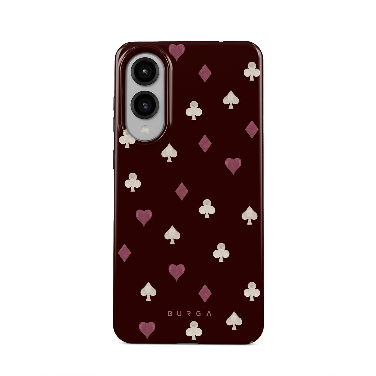 Nothing is as it appears. Hearts, clubs, diamonds, and spades—stacked in your favor or playing against you? This Samsung Galaxy S25 Edge phone case design features a rich burgundy background and minimalist suits that make for a game where the rules are constantly shifting.