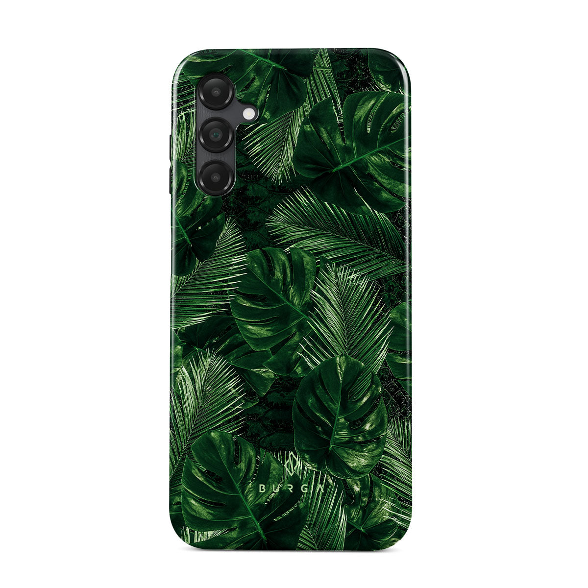 Enter the World of Jungles with our Tropical Garden Samsung Galaxy A14 5G phone case cover showcasing mesmerizing greens. Palm fronds and Monstera leaves' unique patterns will add a tropical touch to your wardrobe while offering heavy-duty protection to your phone.