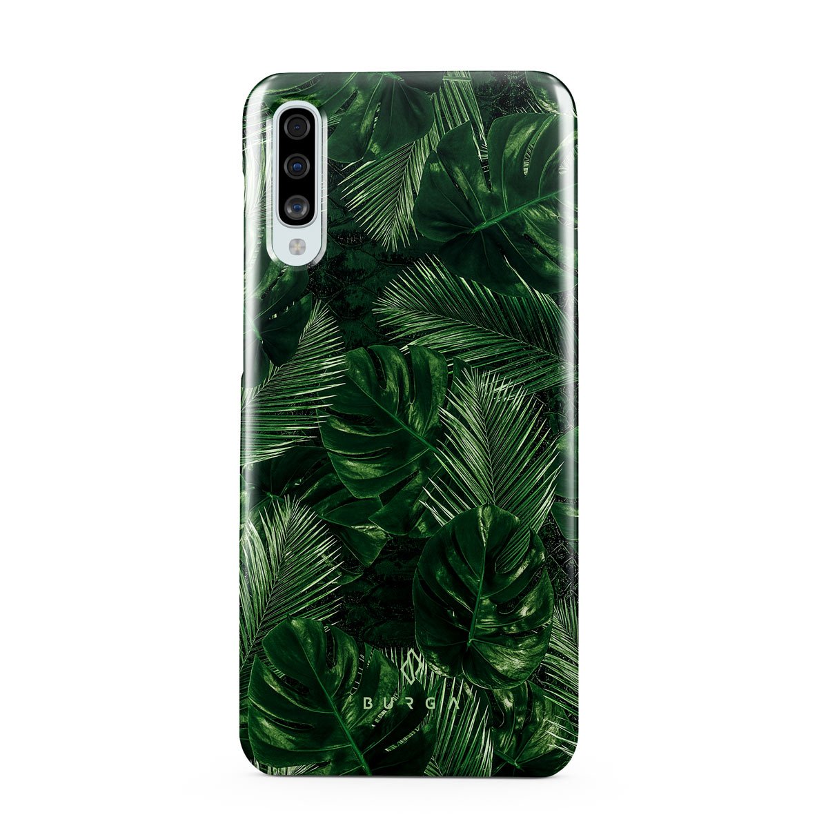 Enter the World of Jungles with our Tropical Garden Samsung Galaxy A50 phone case cover showcasing mesmerizing greens. Palm fronds and Monstera leaves' unique patterns will add a tropical touch to your wardrobe while offering heavy-duty protection to your phone.