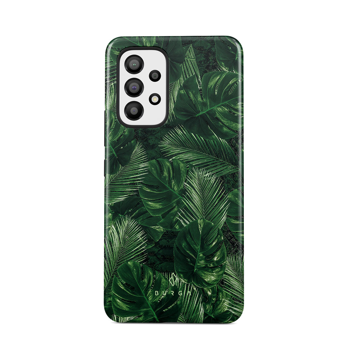 Enter the World of Jungles with our Tropical Garden Samsung Galaxy A53 phone case cover showcasing mesmerizing greens. Palm fronds and Monstera leaves' unique patterns will add a tropical touch to your wardrobe while offering heavy-duty protection to your phone.