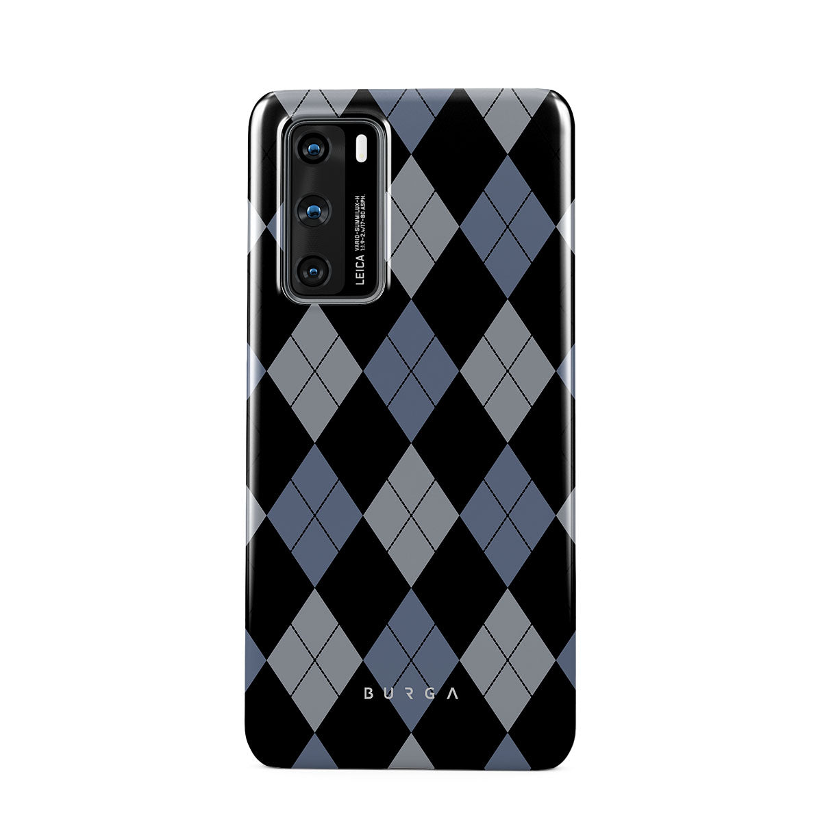 Discover our Trouble Huawei P40 phone case design—a classic argyle pattern featuring stark black diamonds that seamlessly blend with two distinct shades of blue. Made for those who respect the classics but aren't afraid to disrupt the norm.