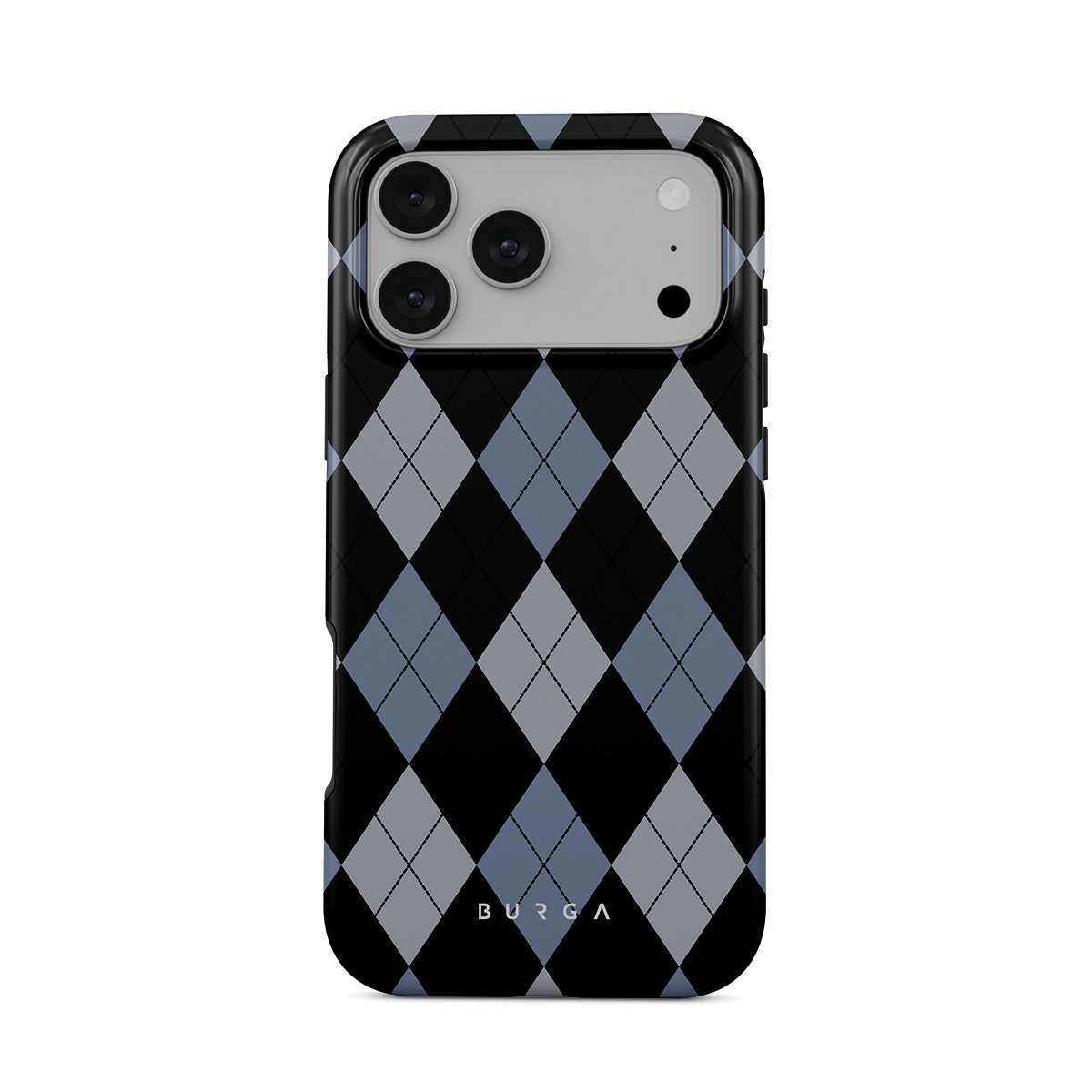 Discover our Trouble iPhone 17 Pro Max phone case design—a classic argyle pattern featuring stark black diamonds that seamlessly blend with two distinct shades of blue. Made for those who respect the classics but aren't afraid to disrupt the norm.