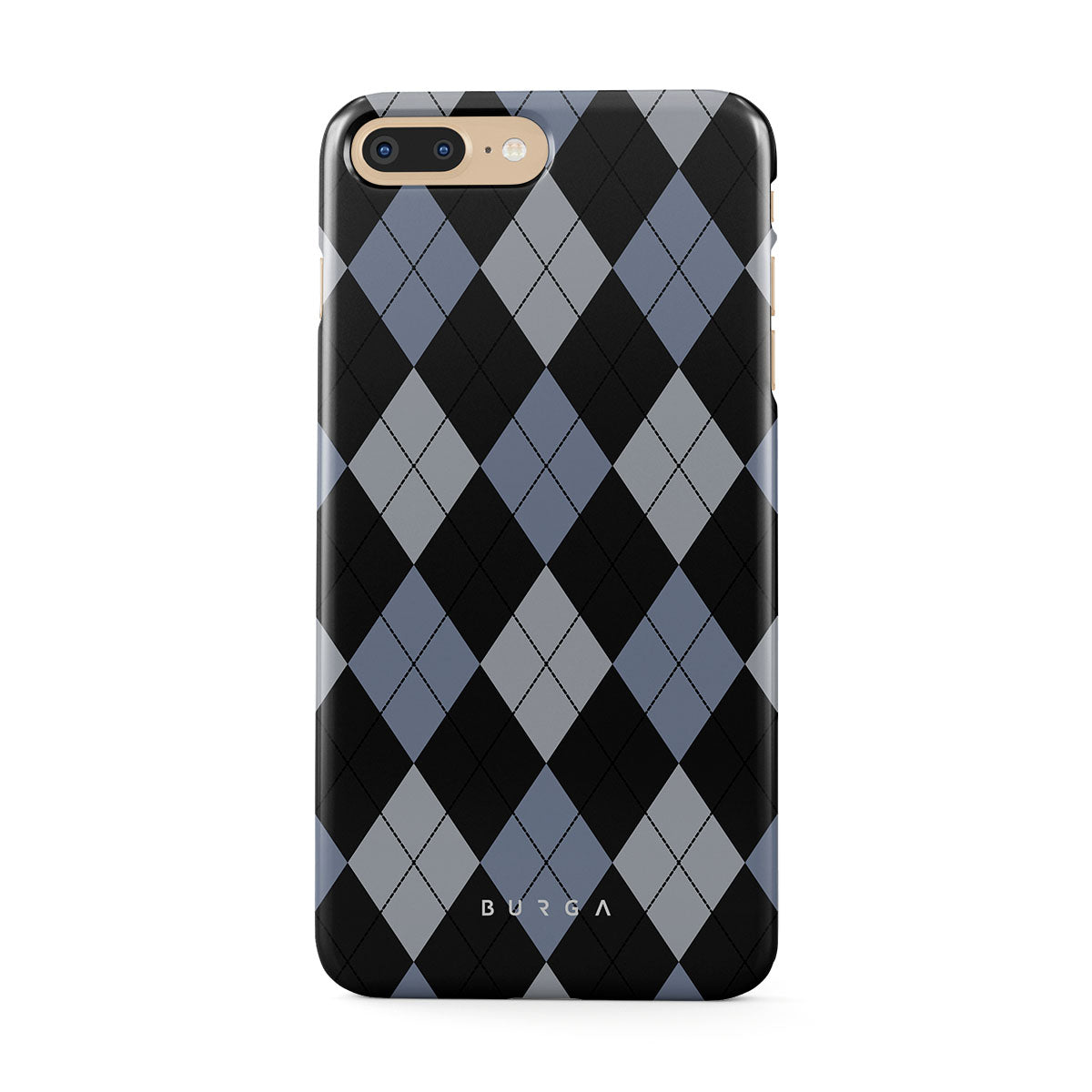 Discover our Trouble iPhone 7 Plus / 8 Plus phone case design—a classic argyle pattern featuring stark black diamonds that seamlessly blend with two distinct shades of blue. Made for those who respect the classics but aren't afraid to disrupt the norm.