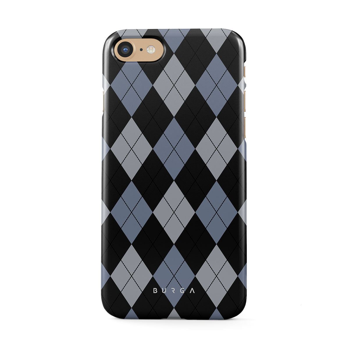 Discover our Trouble iPhone SE (2020) phone case design—a classic argyle pattern featuring stark black diamonds that seamlessly blend with two distinct shades of blue. Made for those who respect the classics but aren't afraid to disrupt the norm.