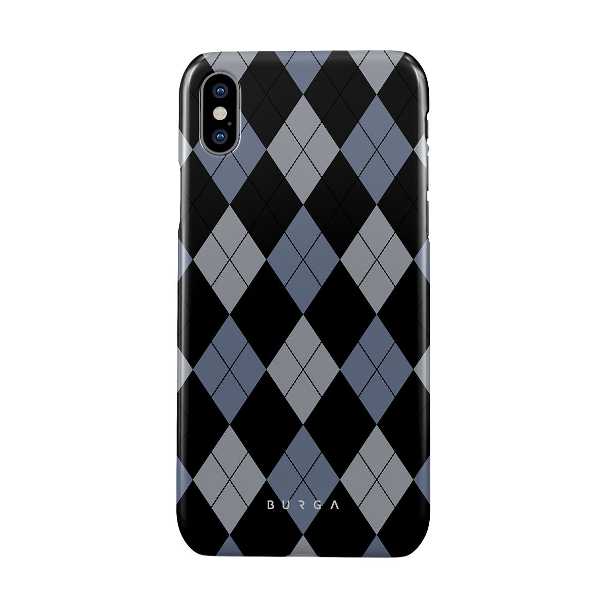 Discover our Trouble iPhone X / XS phone case design—a classic argyle pattern featuring stark black diamonds that seamlessly blend with two distinct shades of blue. Made for those who respect the classics but aren't afraid to disrupt the norm.